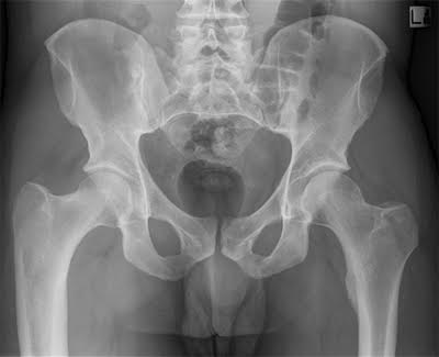 An X-ray is a quick, painless test that produces images of the structures inside your body — particularly your bones. X-ray beams can pass through your body, but they are absorbed in different amounts depending on the density of the material they pass through. Dense materials, such as bone and metal, show up as white on X-rays. The air in your lungs shows up as black. Fat and muscle appear as varying shades of gray. For some types of X-ray tests, a contrast medium — such as iodine or barium — is introduced into your body to provide greater detail on the X-ray images.